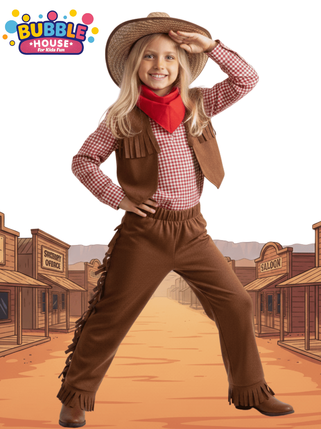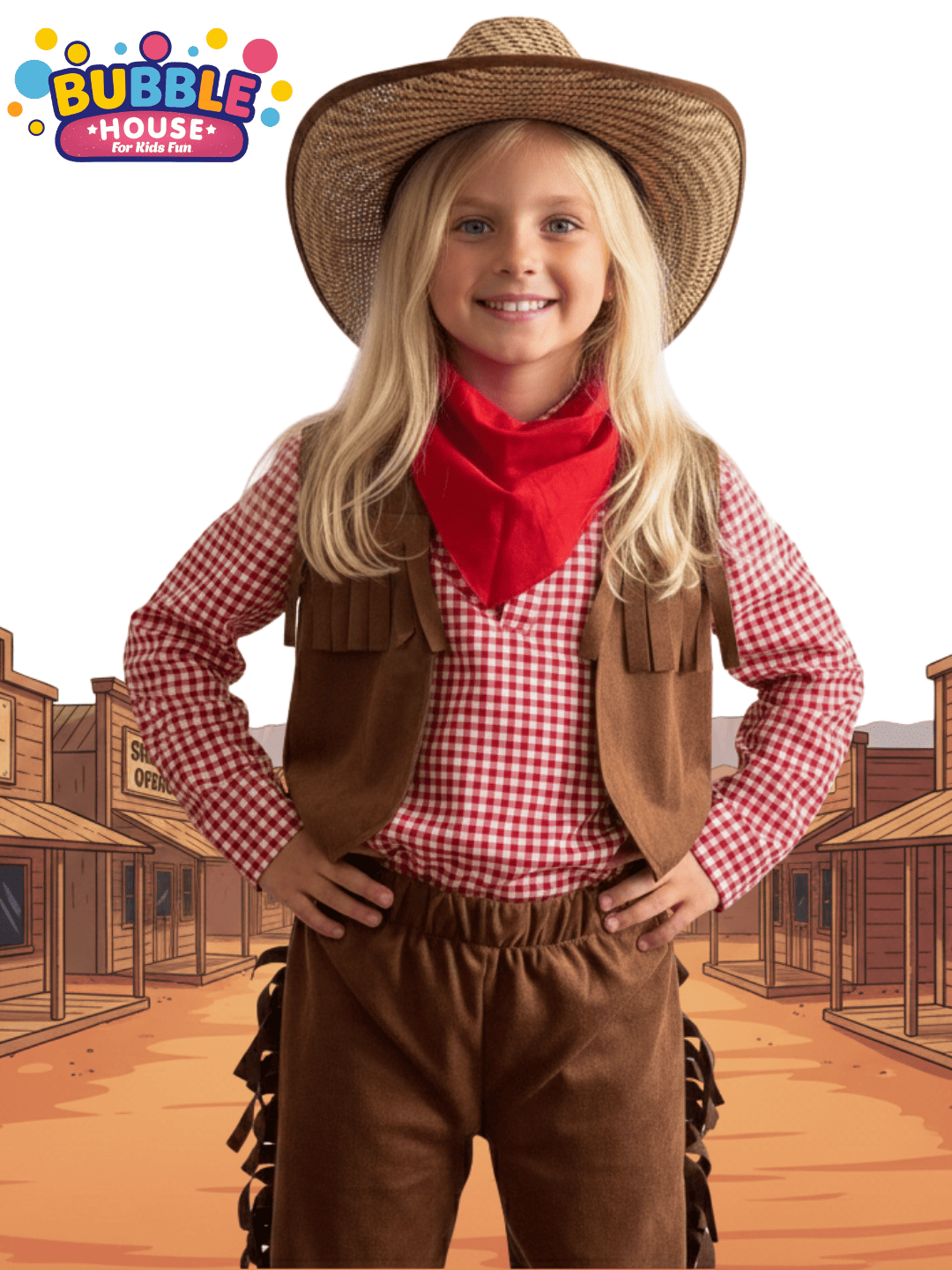 Yumuşak ve hafif kumaşı sayesinde gün boyu konfor sunar. Canlı renkleri ve sevimli kovboy detaylarıyla küçük kovboy kızlar sahnenin yıldızı olur. Hem eğlenceli hem de şık bu kostüm, çocukların favorisi olacak!