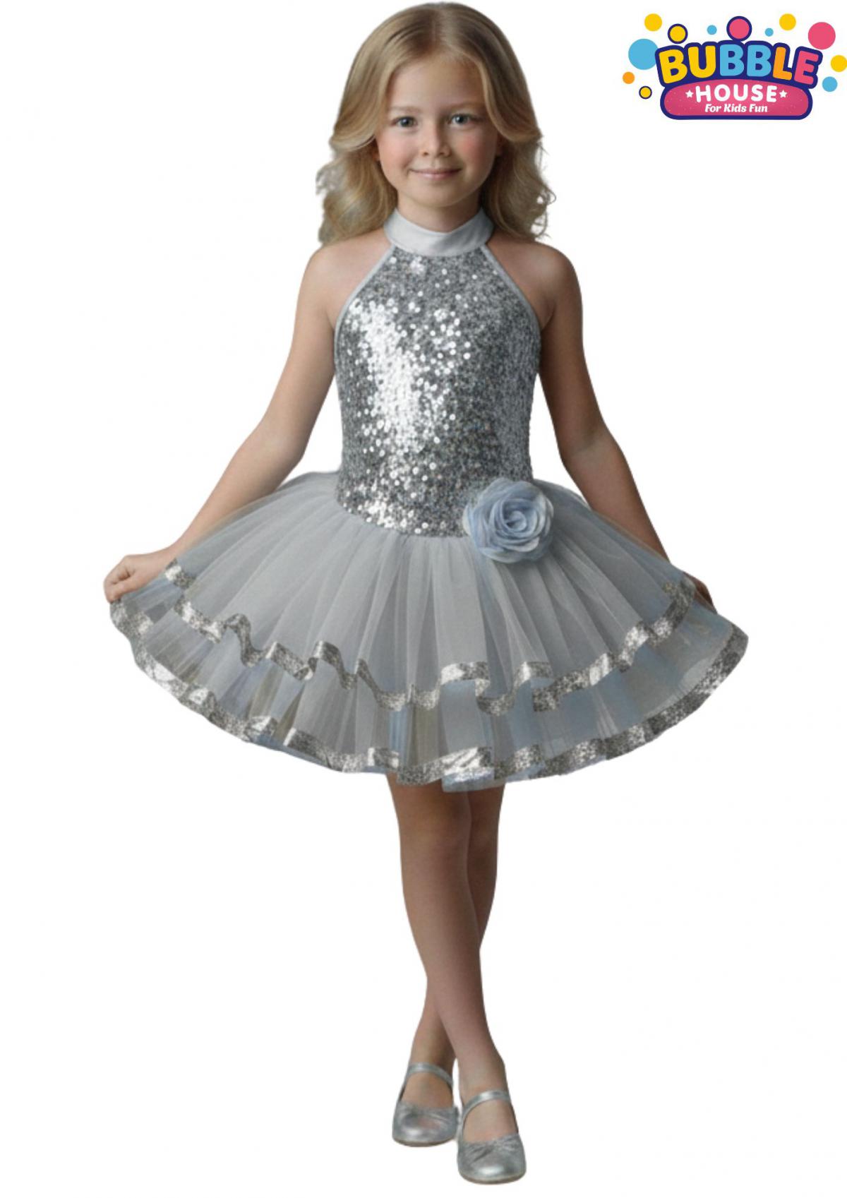 Gümüş Renk Dans Kostüm